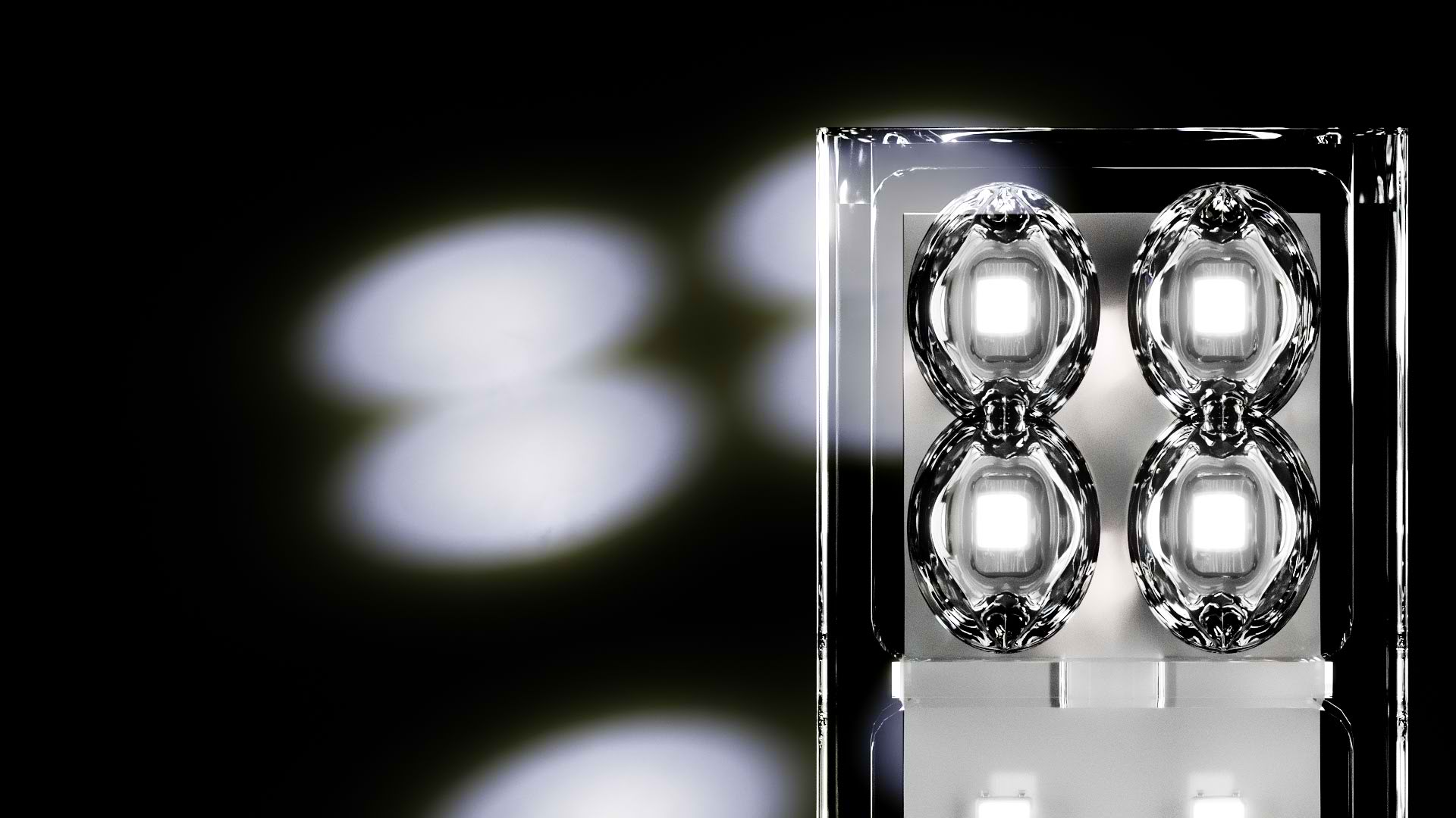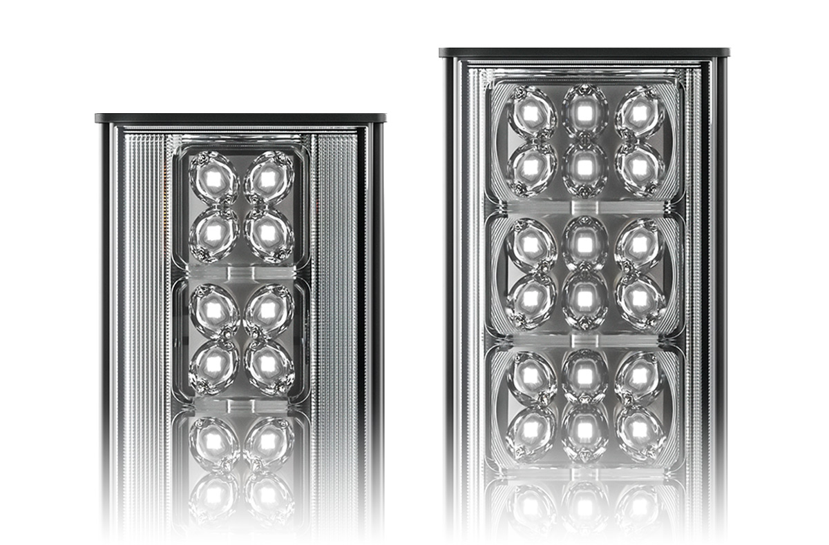 Pour les applications les plus exigeantes, les optiques LENSIBLE peuvent être adaptées avec la version 3 rangées de LED. Un plus grand nombre de LED permet d’obtenir un flux lumineux total plus élevé ou, à flux équivalent, d’améliorer la qualité d’éclairage et le confort visuel, avec une efficacité énergétique pouvant atteindre 220 lm/W.
