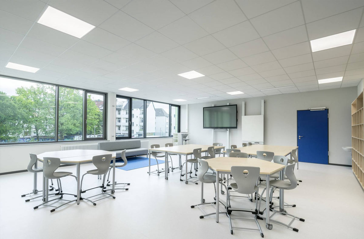 Moderne Schulen sind längst keine Bildungsbunker aus Beton mehr – sondern attraktiv gestaltete Lernorte, in denen die Schülerinnen und Schüler auch durch die Beleuchtung optimal gefördert werden. Damit muss eine zukunftsfähige Schulbeleuchtung nicht nur in punkto Funktionalität und Effizienz überzeugen, sondern die Räume auch durch Lichtwirkung und Leuchtendesign ästhetisch mitgestalten.