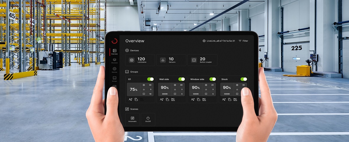 LiveLink vereinfacht und optimiert Lichtmanagement. Intelligentes Licht wird unseren Alltag revolutionieren wie einst die Erfindung der Glühlampe. Licht kann Heilung unterstützen, unsere Konzentrations- und Leistungsfähigkeit steigern, unser Wohlbefinden und usere Sicherheit erhöhen. Was uns zu dieser Revolution fehlt? Lichtmanagement, das durch Intelligenz neue Funktionen bietet und die Planung und Installation ganz einfach macht.