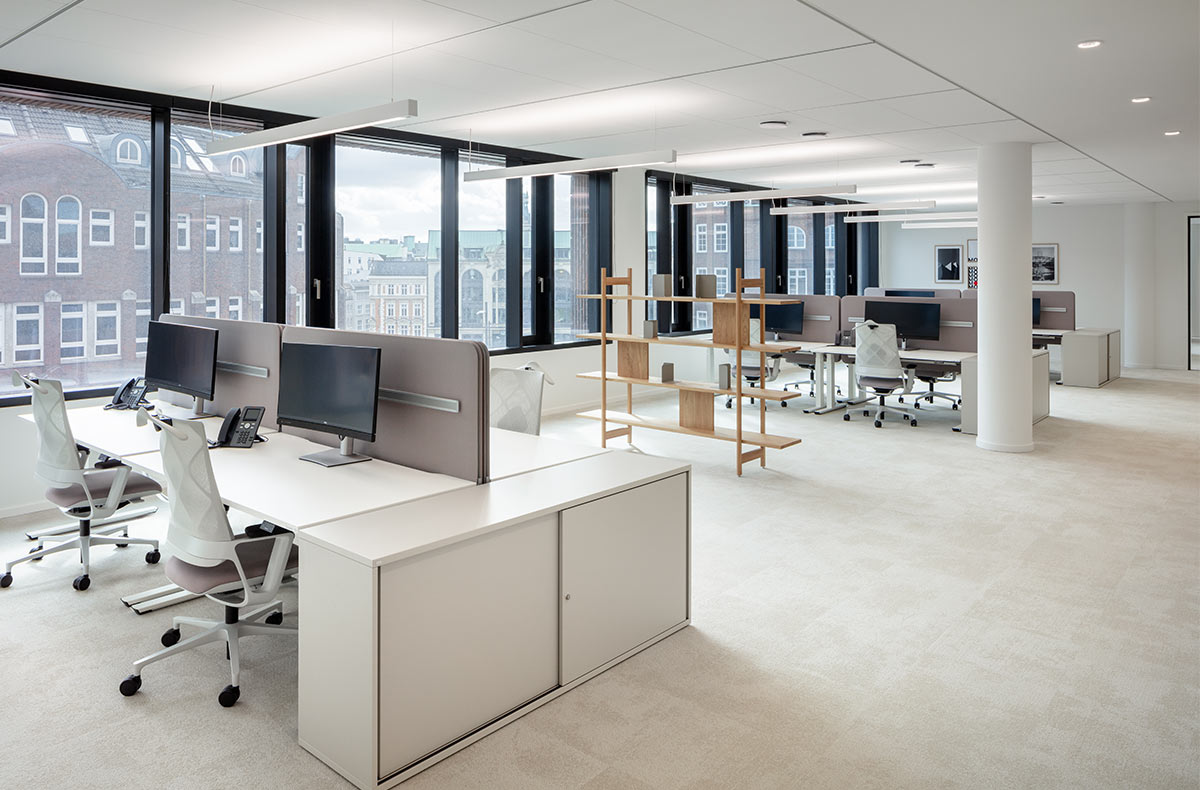 Das Gebäude vereint Büro- und Geschäftsbereiche und beherbergt unter anderem die Zentrale der Hamburger Sparkasse, einen Aston Martin Flagshipstore mit Showroom sowie diverse Büroräume und Gastronomiebereiche. Auch 30 moderne Mietwohnungen finden in dem Gebäude Platz. So vielfältig wie die Nutzung, war auch der Anspruch an das Beleuchtungskonzept.