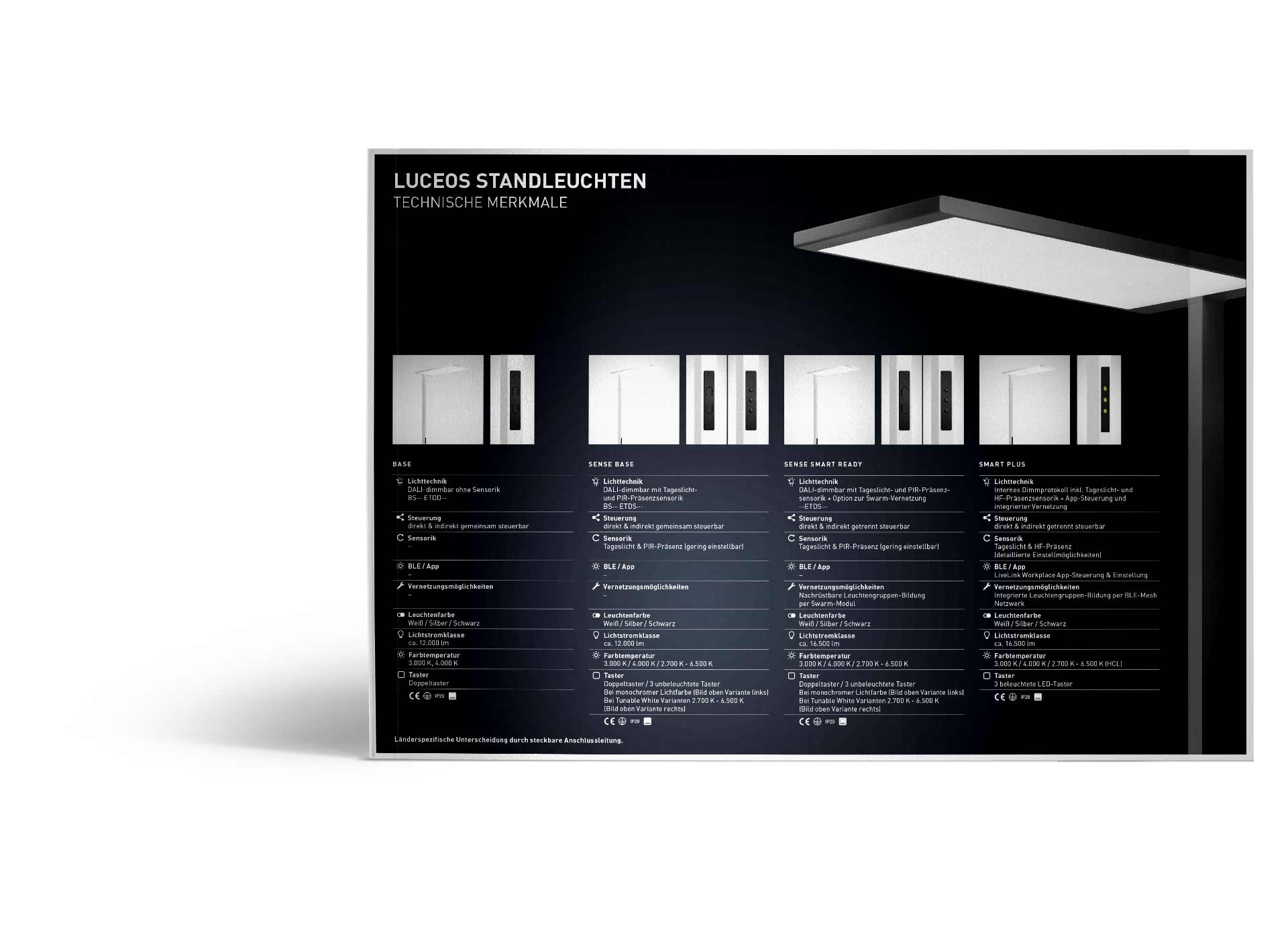 Die passende Standleuchte für jede Aufgabe und Raumsituation im Büro – von der aufs Wesentliche reduzierten Basisversion bis zur komplett und individuell ausgestatteten Luceos: Kombinieren Sie Merkmale wie Leuchtenköpfe, Standfüße oder Tischklemmen mit verschiedenen Optionen bei Lichtverteilung, Lichtfarben und Sensorik. So viel Bandbreite gab es bei Luceos Standleuchten noch nie zuvor.