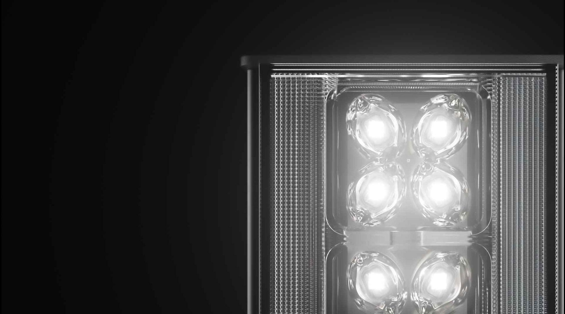 Gerade bei Linsenoptiken stößt die gängige UGR-Bewertung an ihre Grenzen. LENSIBLE Optiken erfüllen nicht einfach die Norm, sondern reduzieren auch die subjektive Blendung durch geringere Kontraste an der Lichtaustrittsfläche. Dafür liegt eine spiralförmige, auf bionischen Prinzipien basierende Mikrostruktur über den Linsen. Sie reduziert die Kontraste für einen besonders ruhigen Lichtaustritt. Die Seitenflächen des Linsenelements koppeln zusätzlich einen Lichtanteil zur Kontrastregulierung aus, vergleichbar zur “Low Contrast Light” Technologie in TRILUX Außenleuchten.