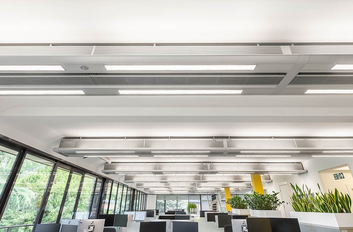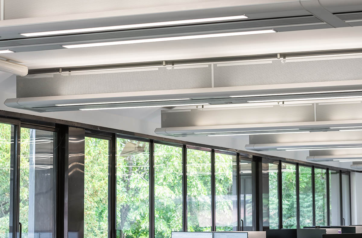 The project involved upgrading old fluorescent luminaires installed in multi-service chilled beams on the first floor, bringing a more sustainable, energy-efficient, and visually comfortable lighting solution to the space.