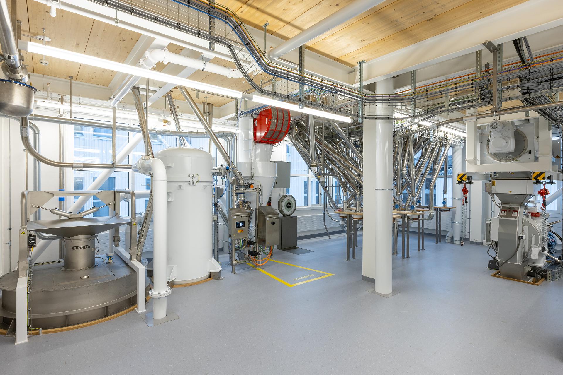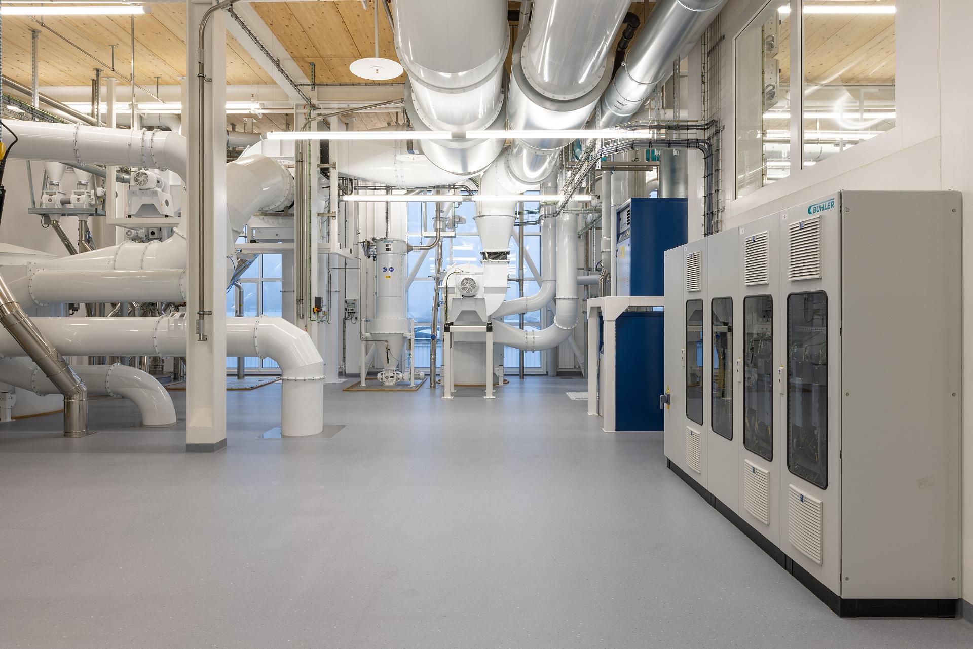 Bühler AG maintains a large number of facilities and buildings on a campus-like site in Uzwil. These include eight application centres for different industries, an Energy Centre, the CUBIC Innovation Campus for research and the Milling Academy as a practice-oriented training facility with its own foam mill. We implemented the lighting for the Customer Centre on the campus back in 2009. Bühler AG once again relied on TRILUX for the modernisation that has now been completed. There was also an exciting new building project - the development and realisation of a lighting concept for the new Milling Academy on the campus. The core requirements in both cases: excellent lighting quality, maximum efficiency for greater sustainability and an attractive design that fits in with Bühler AG as an international technology group.