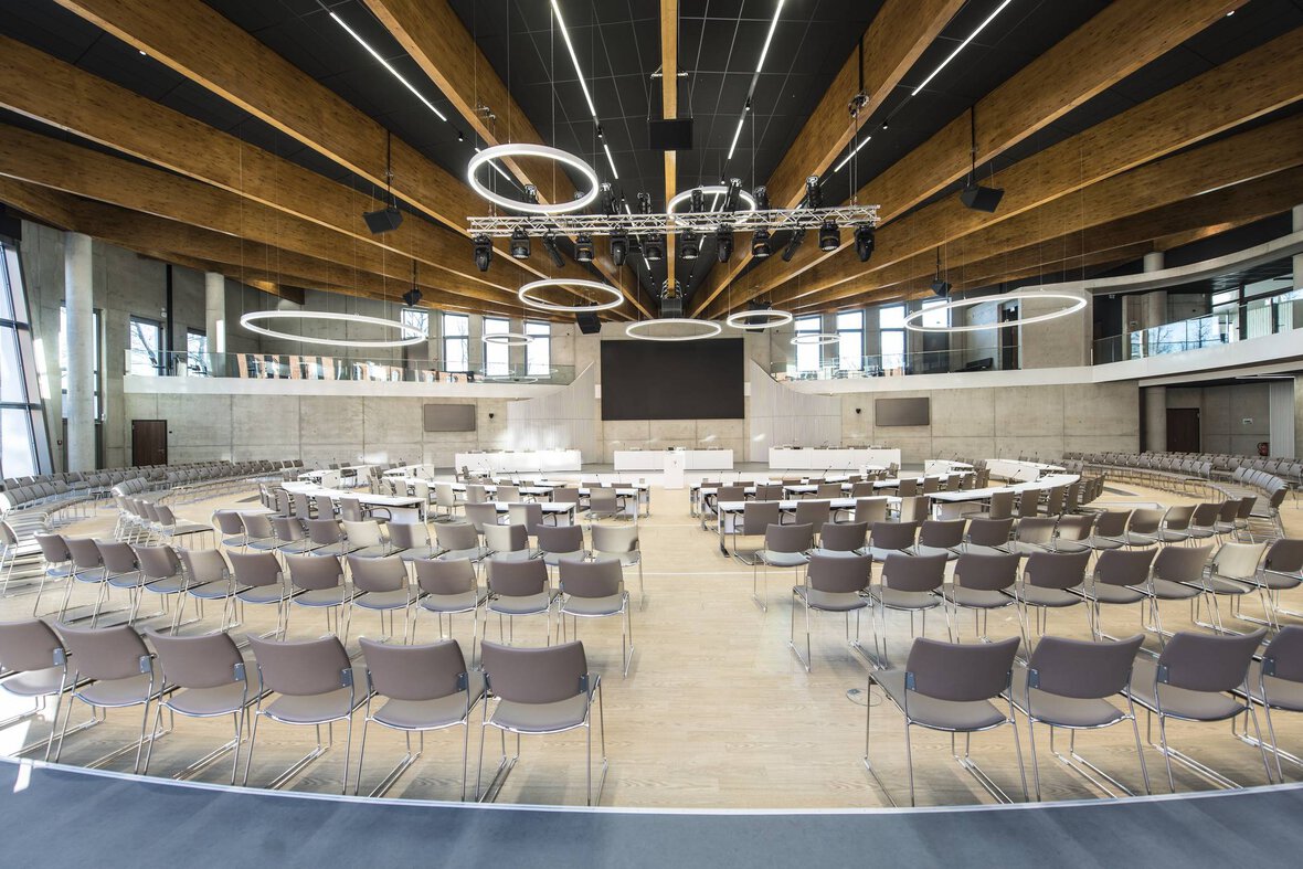 As a pendant luminaire with TRILUX ConVision® technology and gold-coloured limiter, Finea emits glare-free, warm-toned light above tables and counters, and is available as a project-specific special solution on request.