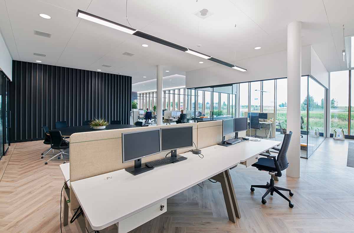 Open-plan offices are open-plan work areas with changing occupancy and a variety of activity zones. Sensors must reliably detect both motion and presence, as well as avoid unnecessary switch-on times. Precise detection and, depending on the concept, the option of zonal or group control are decisive. IntuSens sensors enable flexible, needs-based lighting control for open-plan office structures.