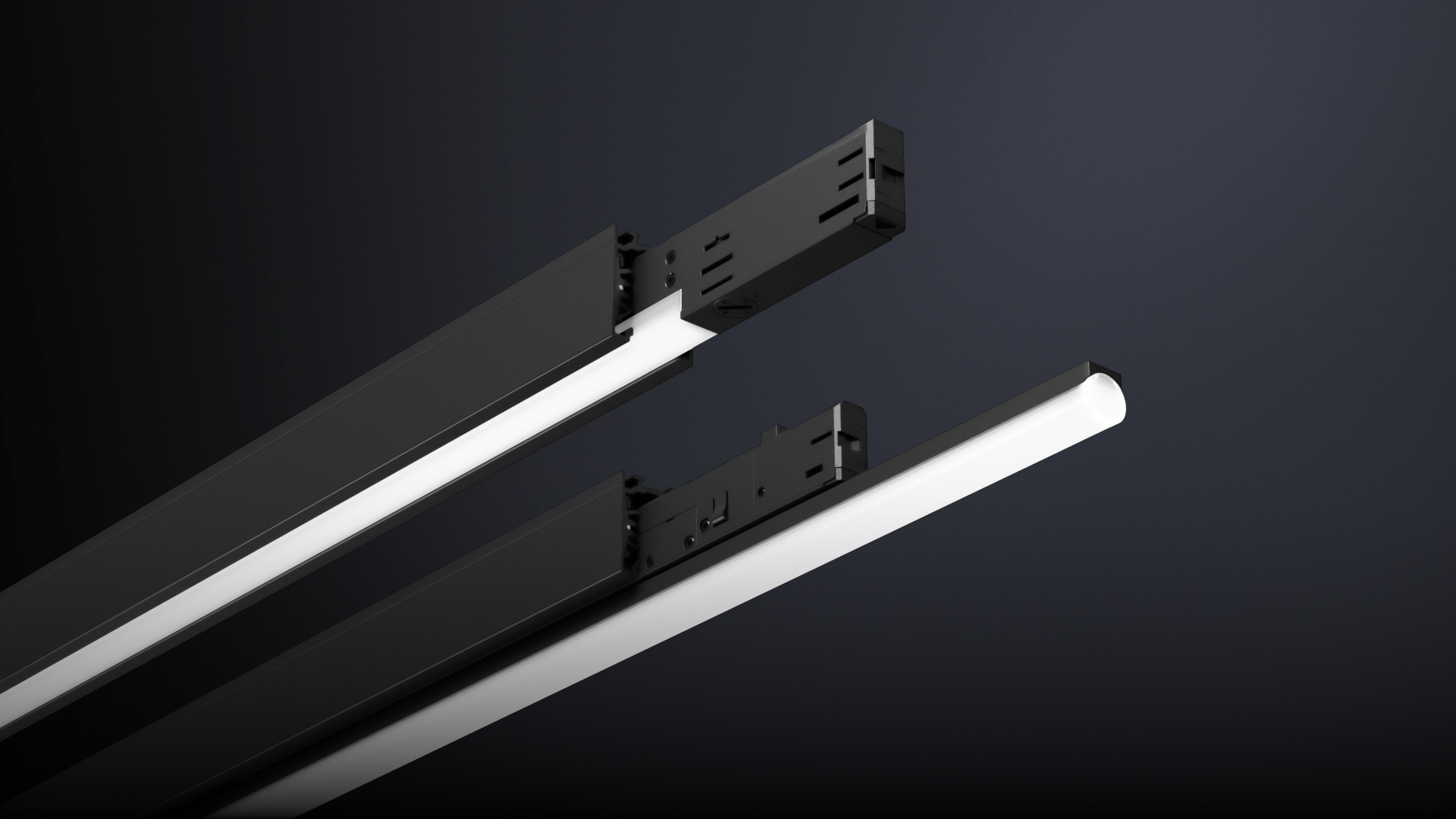 Thanks to their translucent end caps, rows of Linell surface-mounted elements seem like a continuous line. One turn and the luminaires swivel out on the adapter. The second fixing point can be slid along the parallel track, creating attractive and individual light structures that catch the eye.