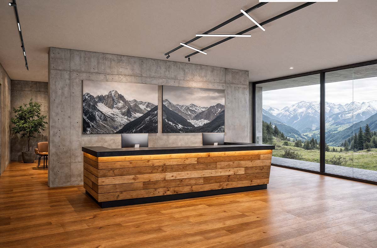 Create high-contrast, atmospheric lighting moods with Linell inserts in combination with spotlights and pendant luminaires – wherever informal encounters are the focus and if the room is to be optimally staged.