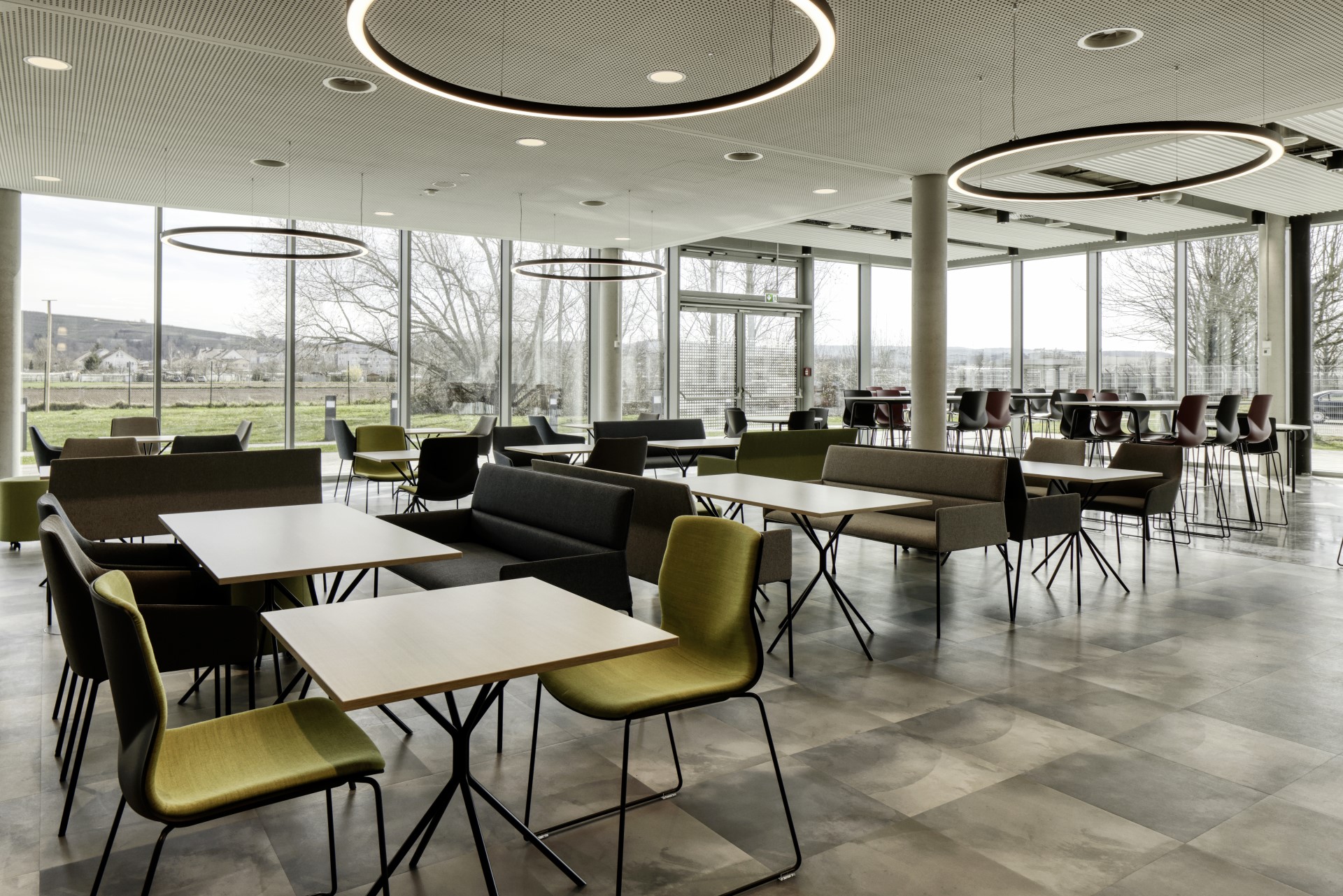The "Center of Climate" at Zehnder's site in Lahr, Baden-Württemberg, combines open office space, meeting and conference rooms, a new restaurant with a café as a meeting place and a brand experience room on a total area of almost 5,000 square meters. The well-being of the users in particular plays a central role in the new building.