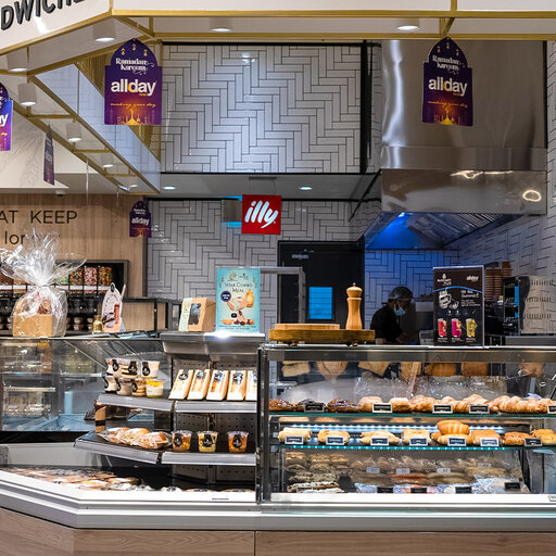 The lighting concept supports the functional and aesthetic character of the store: track provides the infrastructure, while B.Veo spotlights provide efficient and powerful ambient lighting. The Lenty spotlights with low-dispersion ConVision LED optics provide focused lighting accents. As vertical lighting components, Grado floodlights illuminate the green wall in the checkout area without dazzling staff and customers, while the designed motif wall in the lounge and coffee area is uniformly illuminated by Idesto wallwashers.