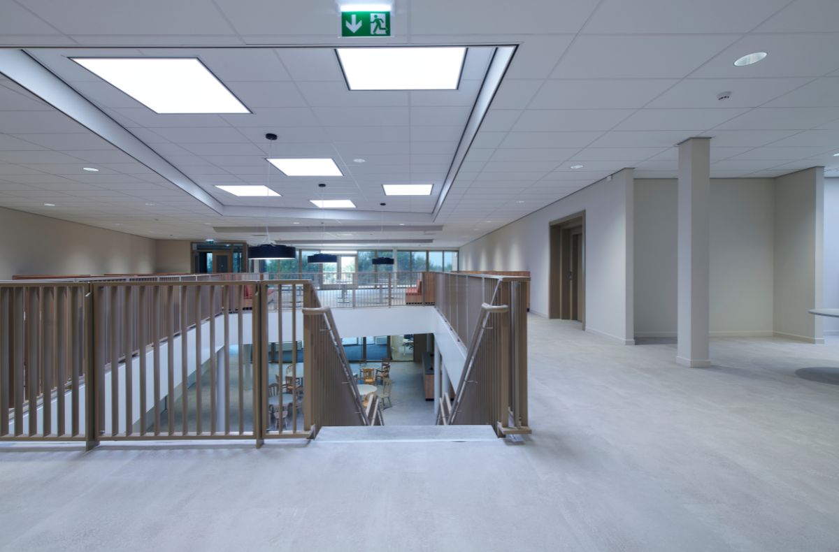 The lighting concept blends seamlessly into the sustainable character of the new building. The architectural firm TWA from Burdaard designed an energy self-sufficient complex focussing on people and the environment. It was built with recycled materials, over 400 solar panels and a climate-proof outdoor area. The requirements were quickly clear, but the realisation was less obvious: "The building consists of different heights, sloping ceilings and various rooms. In such an environment, dark zones quickly become a threat." Achieving good uniformity was therefore a major challenge. “We started with a detailed lighting plan in which we brought design and technology together from the outset.”