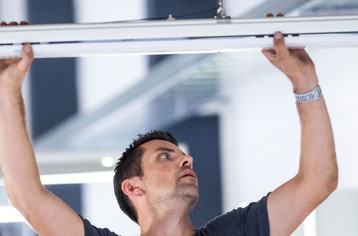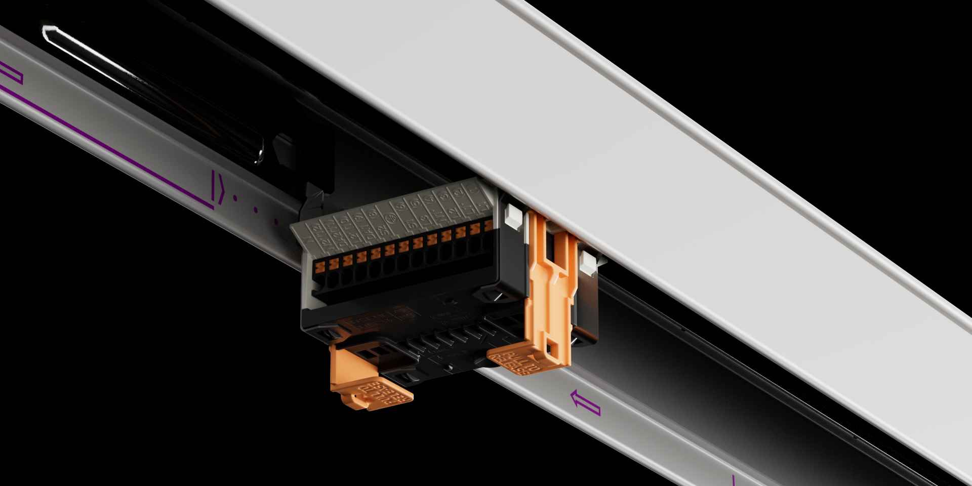 Nel profilo portante E-Line Pro è racchiusa tutta la nostra esperienza di sistemi per fila continua: facile da montare, versatile e completamente connesso. E lo si vede, lo si sente e lo si percepisce già in fase di montaggio. La direzione di montaggio è chiaramente indicata sul profilo, mentre i nuovi giunti, inserti e moduli si inseriscono a scatto con feedback acustico, a garanzia di un collegamento elettrico e meccanico sicuro.