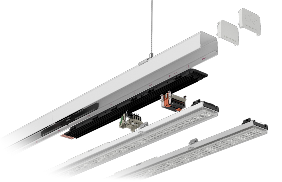 Gli impianti esistenti possono essere riqualificati facilmente con una sostituzione 1:1. La conversione senza usare attrezzi di un convenzionale E-Line T5/T8 alla tecnologia LED si realizza in modo rapido e immediato. Anche per ampliare progetti E-Line esistenti, TRILUX continua ad offrire profili e moduli compatibili.