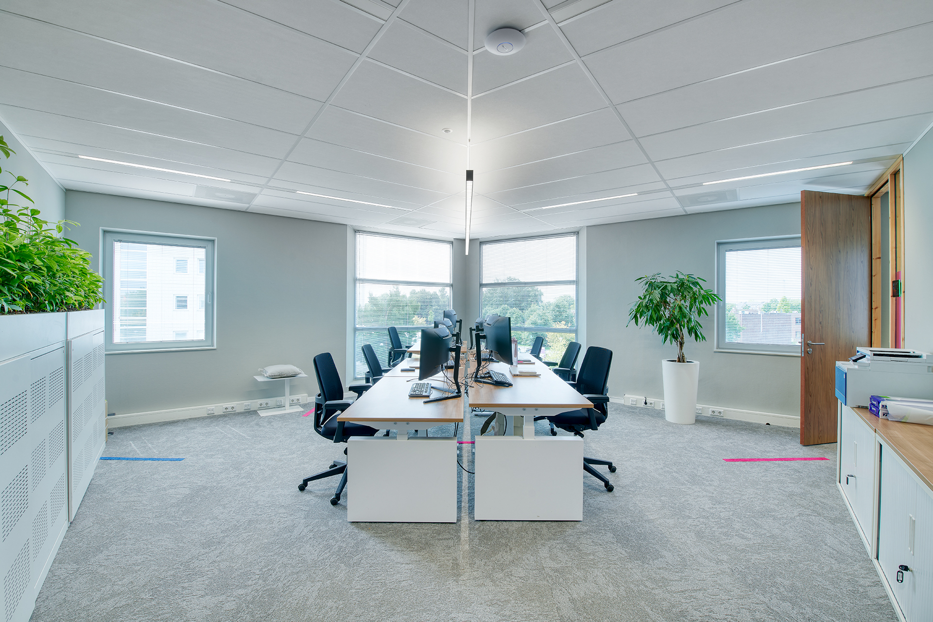 “TRILUX heeft dat perfect uitgevoerd.” Naast sfeer was het belangrijk dat het licht praktisch en flexibel is. Pendelarmaturen boven bureaus, het nieuwste RAIL-systeem van gang tot in vergaderruimtes, alles is afgestemd op de indeling en functie van de ruimte waardoor een prettige balans tussen werklicht en sfeer ontstaat.