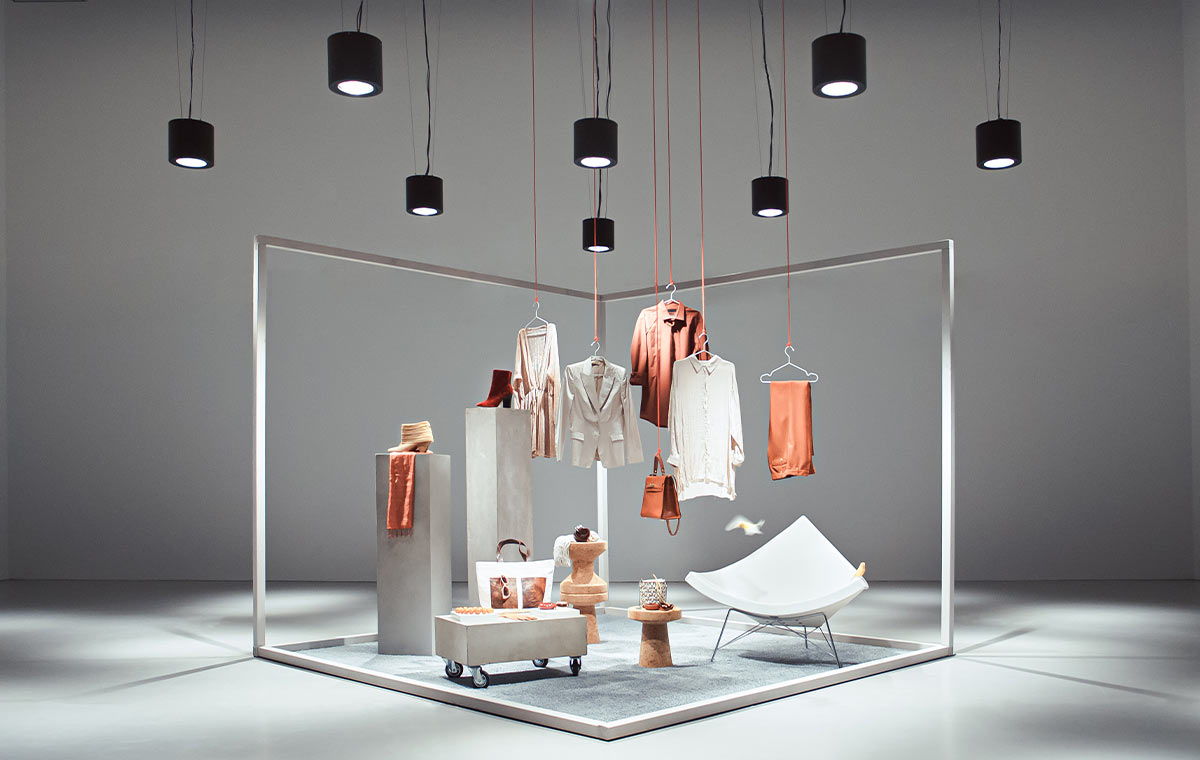Geen uniforme sfeerverlichting, geen enkel accent. Maar eerder de briljante verlichting van gedefinieerde kamerzones of de hele winkel. Toegevoegde waarde door flexibel gebruik van de ruimte: onafhankelijk van meubilair en productplaatsing, zonder de noodzaak om armaturen tijdrovend aan te passen.