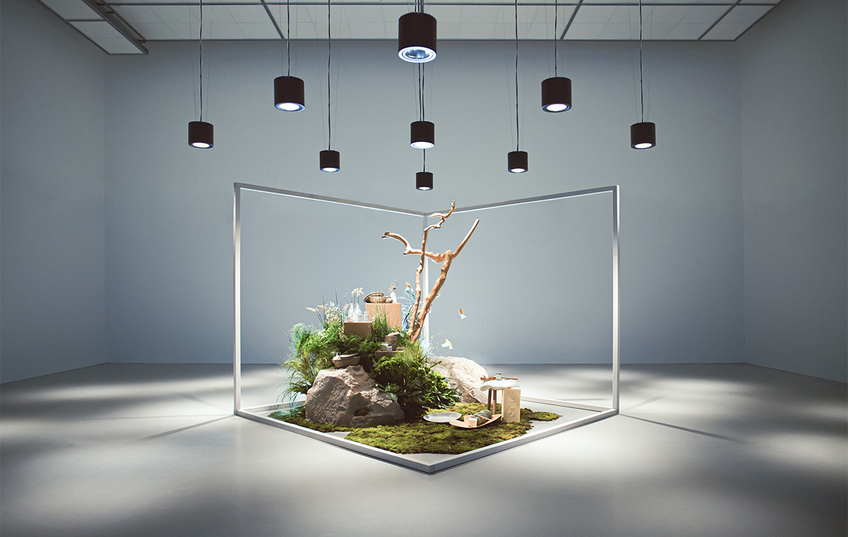 De vorm van de Glorea is even discreet als de technologie revolutionair is: niets leidt af van het verlichtingseffect, de cilindervormige basisvorm past in elk winkeldesign met een hoogwaardige afwerking.