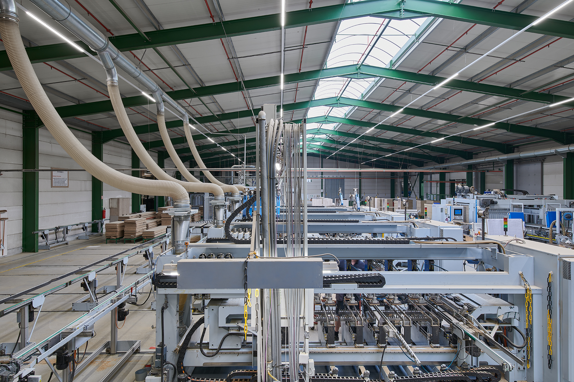Industriële meubelfabrikant Bauwens in Beernem met 40.000 m² aan productiehallen, verving haar oude TL- en kwikdamplampen door energiezuinige LED-verlichting van TRILUX. Met een lichtplan van Ensatec werden ruim 3 kilometer TRILUX E-Line Next LED-lichtlijnen geïnstalleerd, individueel aanstuurbaar per afdeling en uitgerust met bewegings- en daglichtsensoren. Zo wordt het licht automatisch gedimd of uitgeschakeld wanneer het niet nodig is, wat zowel energiekosten verlaagt als duurzaamheid en een groen imago versterkt.
