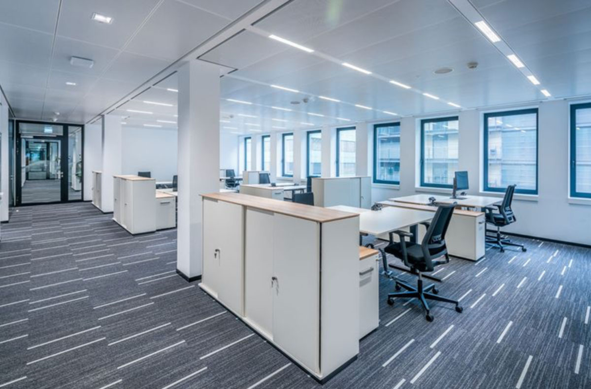 In het Frankfurtse Gutleutviertel staat de hoofdvestiging van de DVAG (Deutsche Vermögensberatung). In 2018 was het daar tijd voor een volledige renovatie. Door onder andere royaal gebruik te maken van glaselementen en heldere structuren werd de uitstraling, zowel binnen als buiten de hoofdvestiging, open en transparant. Ook TRILUX mocht haar steentje aan dit project bijdragen. De verlichtingsspecialist leverde 9.000 LED-armaturen. Op de bouwplaats bleken vooral de speciale E-Line LED lichtoplossingen bijzonder populair.