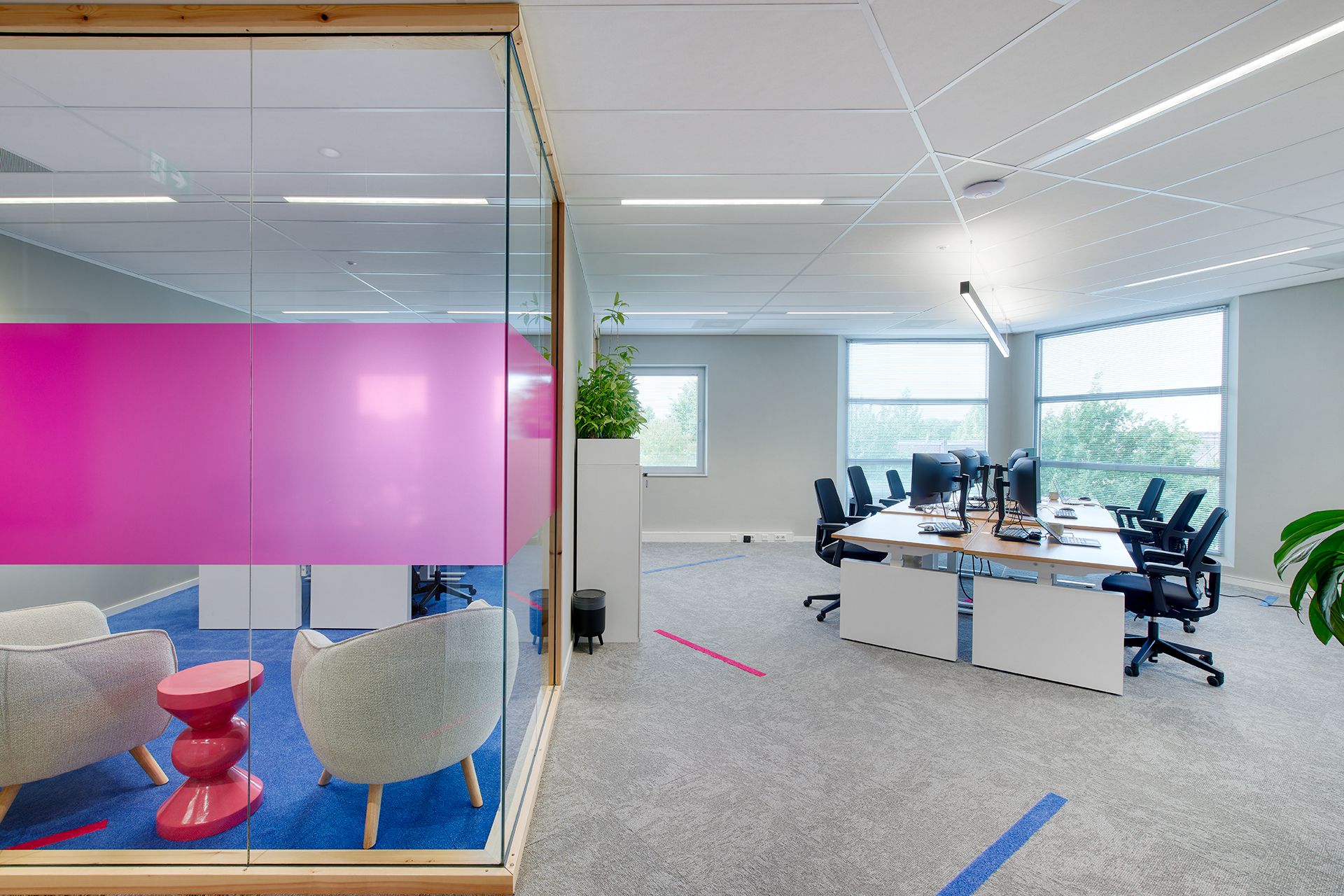 In alle ruimtes, van kantoren tot ontmoetingszones en werkcafé, is verlichting afgestemd op functie en sfeer. Pendelarmaturen, bandrasters en het RAIL-systeem bieden flexibiliteit bij toekomstige wijzigingen in indeling of gebruik van de ruimtes. Het resultaat is een moderne, inspirerende werkplek waarin techniek, comfort en design optimaal samenkomen.