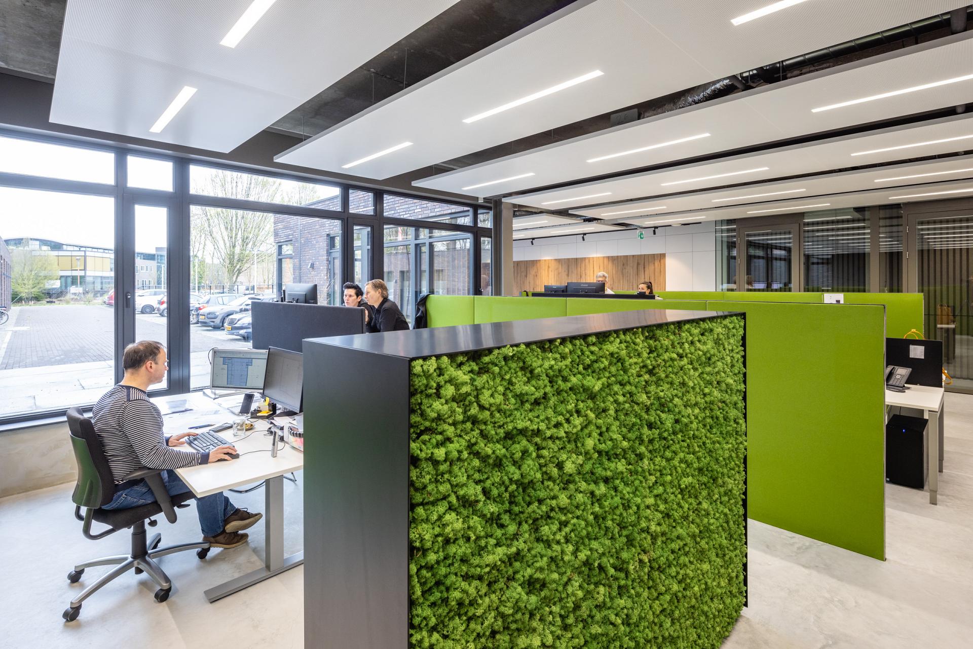 De combinatie van klimaatplafonds, ventilatievoorzieningen en geïntegreerde verlichting zorgt voor een aangenaam binnenklimaat en een hoog visueel comfort. Het resultaat is een moderne kantooromgeving waarin techniek, architectuur en verlichting naadloos samenkomen.
