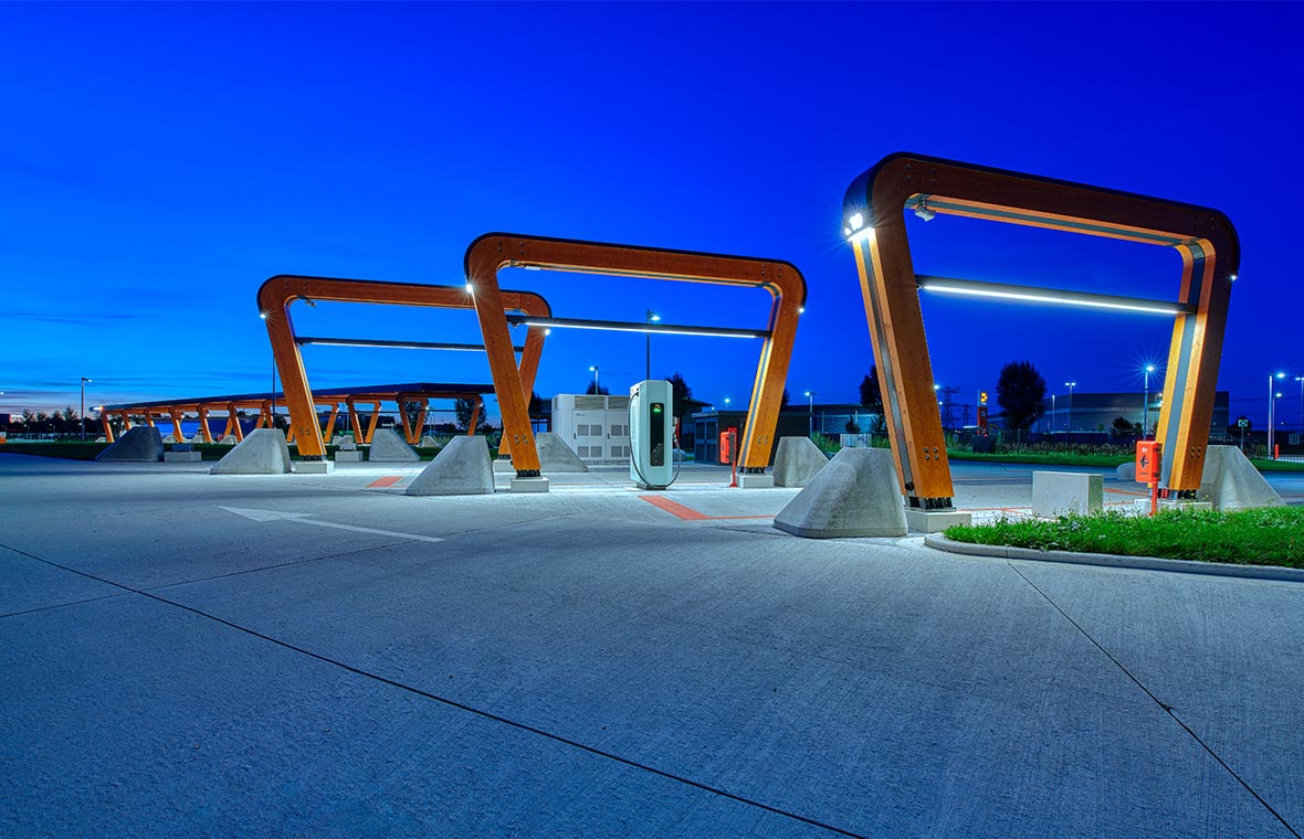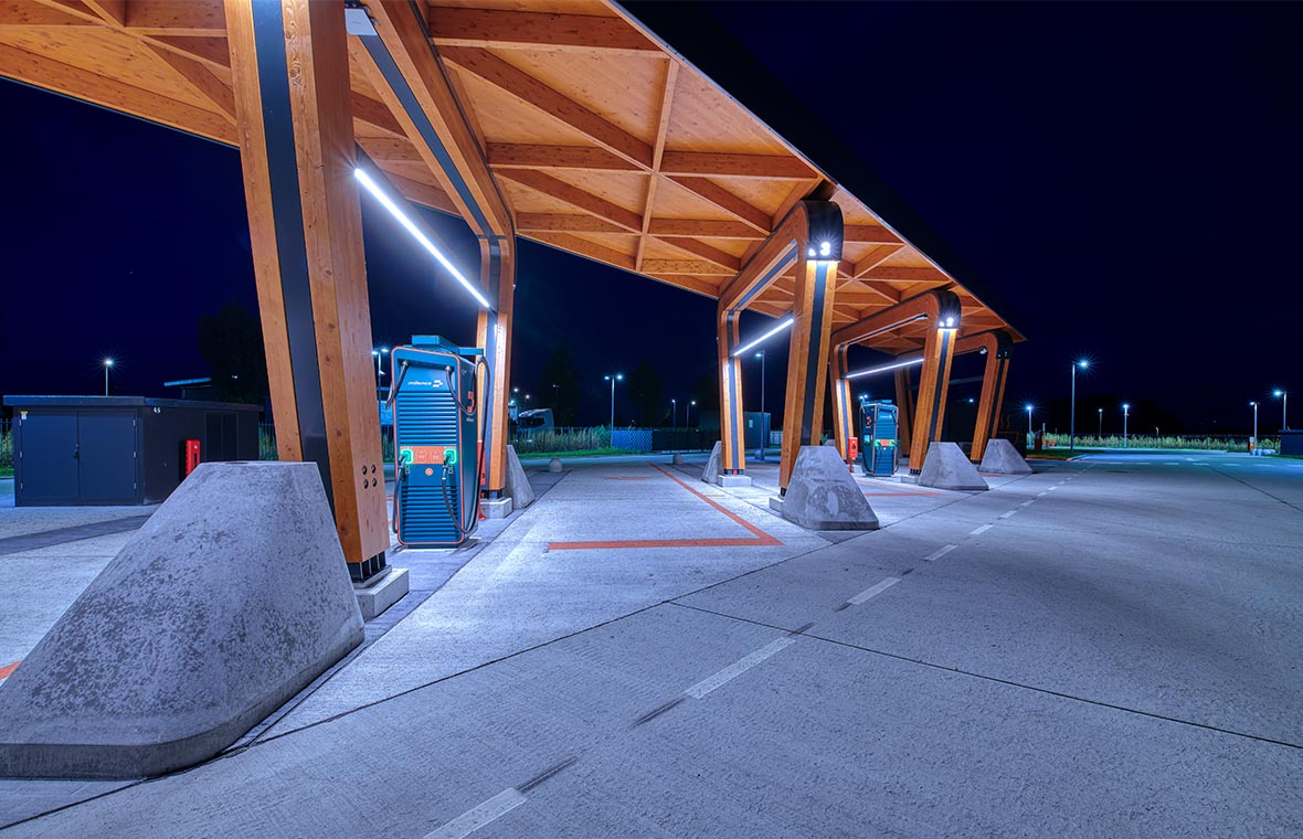 Voor het laadstation in Zwolle (Nederland) realiseerde TRILUX een uitgebreid verlichtingsontwerp.
