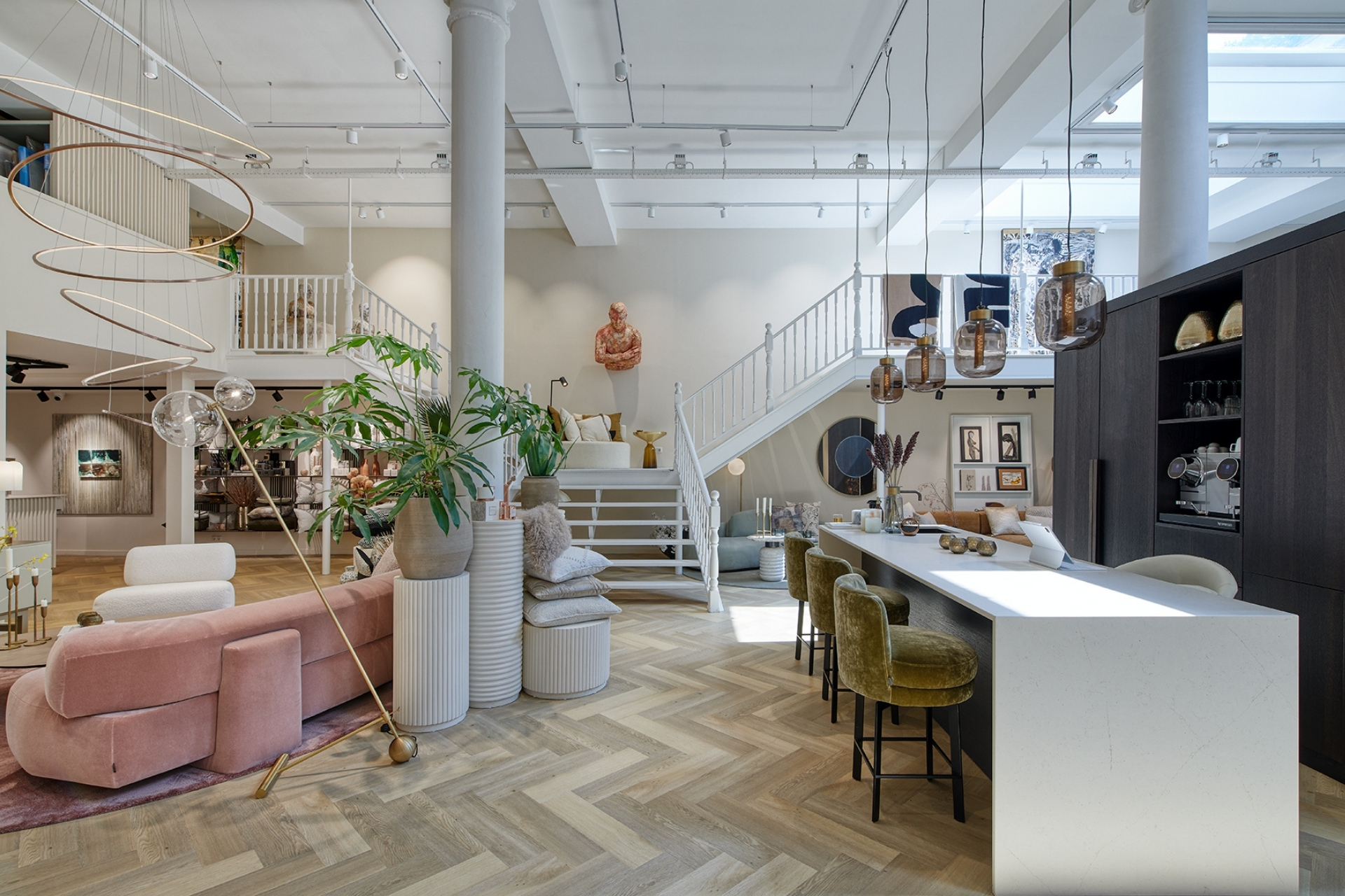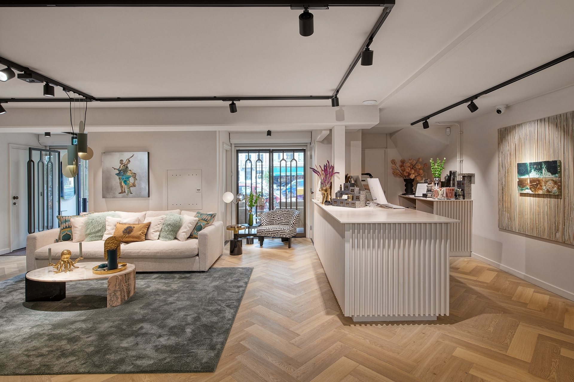 In het pand aan de Overtoom in Amsterdam is een uniek interieurconcept gerealiseerd: een combinatie van interieurwinkel, ontwerpstudio en high-end galerie. TRILUX verzorgde het volledige lichtplan, met een focus op flexibiliteit, kleurechtheid en esthetische integratie in de bestaande inrichting.