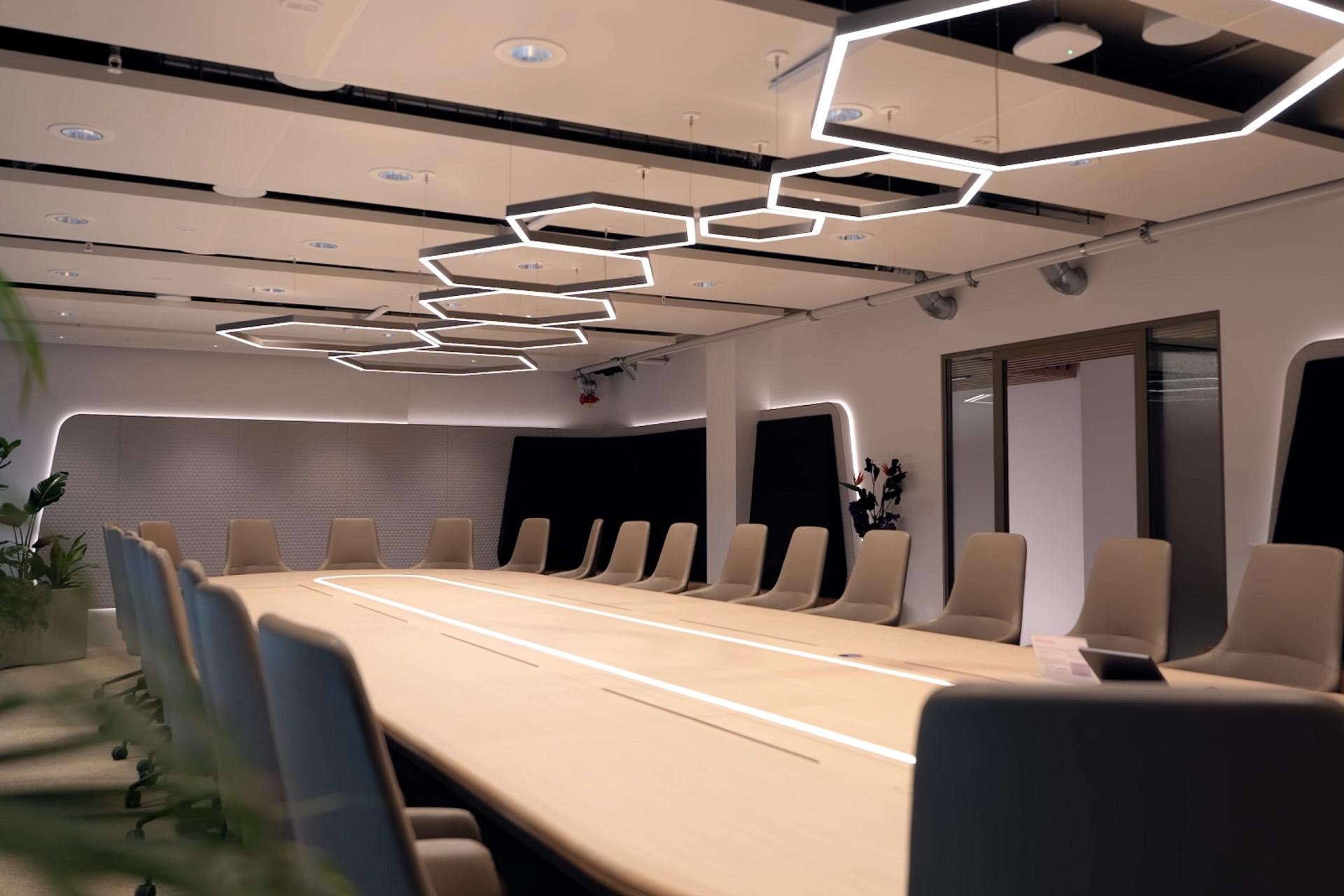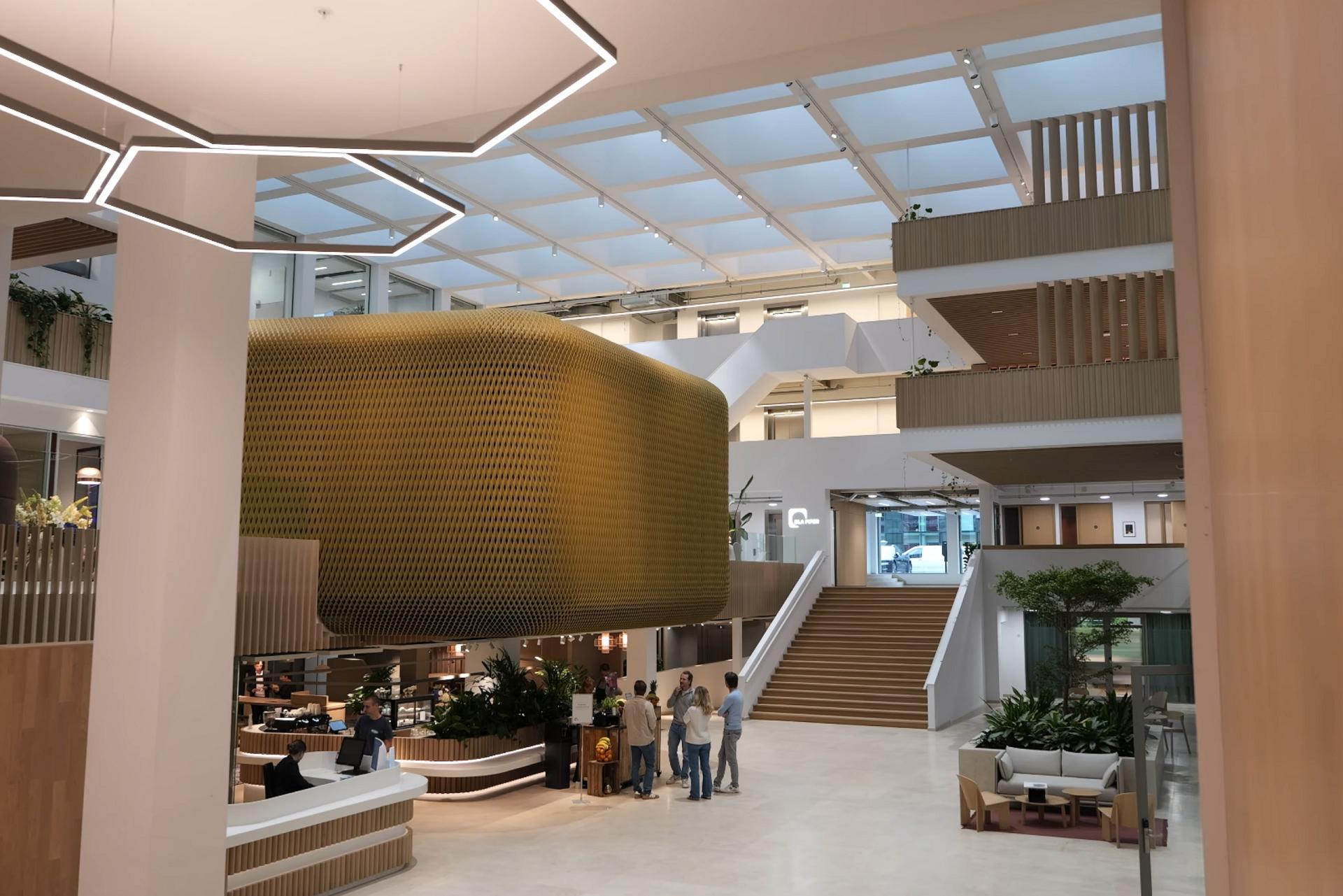 TRILUX leverde een volledig geïntegreerde verlichtingsoplossing, inclusief lichtadvies, lichtplan en installatie. De verlichting is afgestemd op de kantoorindeling, vergaderzalen, openbare ruimtes en atrium. Slimme toepassingen en sensorsturing zorgen voor optimaal comfort, energiebesparing en een prettige werkbeleving. Binnen zorgen Sonnos, 39G3, 74, Aragon Fit en Jovie voor functioneel en comfortabel licht op de werkplekken. Kalo spots en Canilo armaturen accentueren vergader- en ontvangstzones, waardoor een dynamische en representatieve kantooromgeving ontstaat.