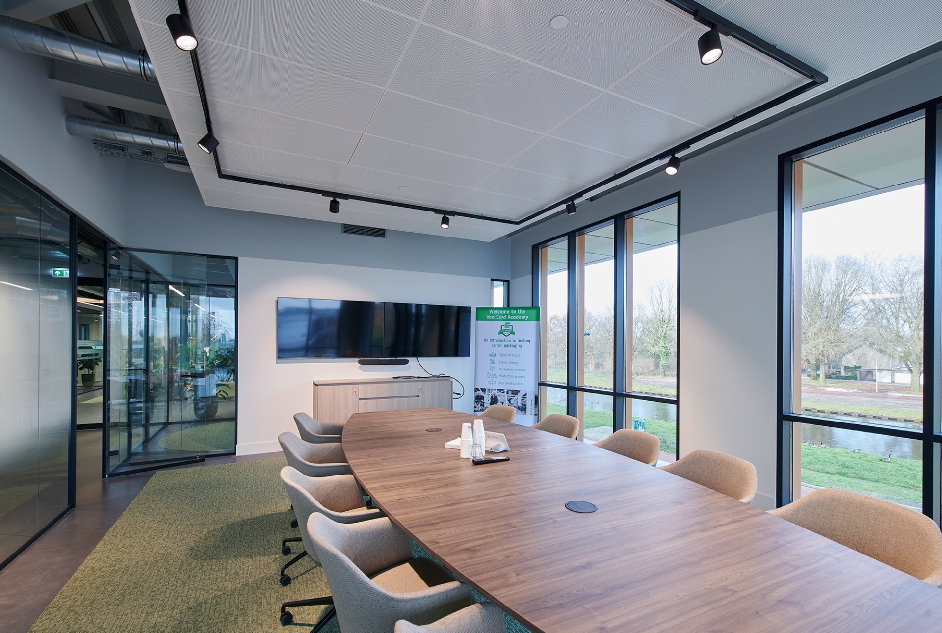 Voor de nieuwe energie- en gasneutrale productiefaciliteit van Koninklijke Van Eerd in Tilburg ontwikkelde TRILUX een compleet lichtconcept op maat. Het E-Line lichtlijnsysteem levert hoge lichtniveaus tot 500 lux op werkplekken en nog hoger bij de drukpersen, gecombineerd met een uitstekende kleurweergave voor nauwkeurige kwaliteitscontrole. In kantoren en overige ruimtes zorgen pendelarmaturen, B.Veo- en Solegra-armaturen voor een functioneel én sfeervol geheel, terwijl buiten Invego- en Inveria-armaturen zorgen voor optimale verlichting van overdekte zones en toegangspaden.