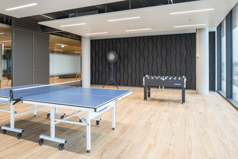 Een belangrijk kenmerk van de verlichting is de flexibiliteit. De transparante en open armaturen kunnen eenvoudig worden aangepast aan wisselende projectteams en diverse werkpleksituaties. Tegelijkertijd sluiten ze naadloos aan bij de architectuur van het gebouw, waarin geborgenheid op de werkplek én contact met collega’s op andere verdiepingen centraal staan. Het resultaat is een functioneel en esthetisch uitgebalanceerd verlichtingssysteem dat zowel duurzaam als toekomstbestendig is.