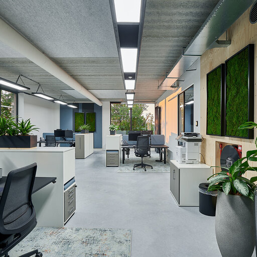 Bij de vervanging van de verlichting van Verkade Beton is gekozen voor een prettige koele lichtkleur (4000K), waardoor de eerdere gele gloed van de TL armaturen uit de hal verdwenen is. De heldere verlichting zorgt voor een frisse blik en aanzienlijk verschil in en op de verschillende werklocaties.