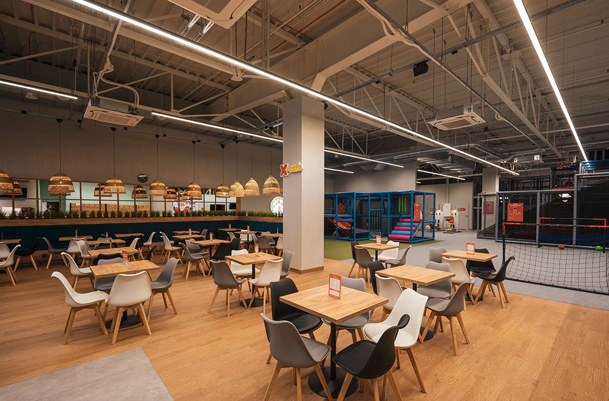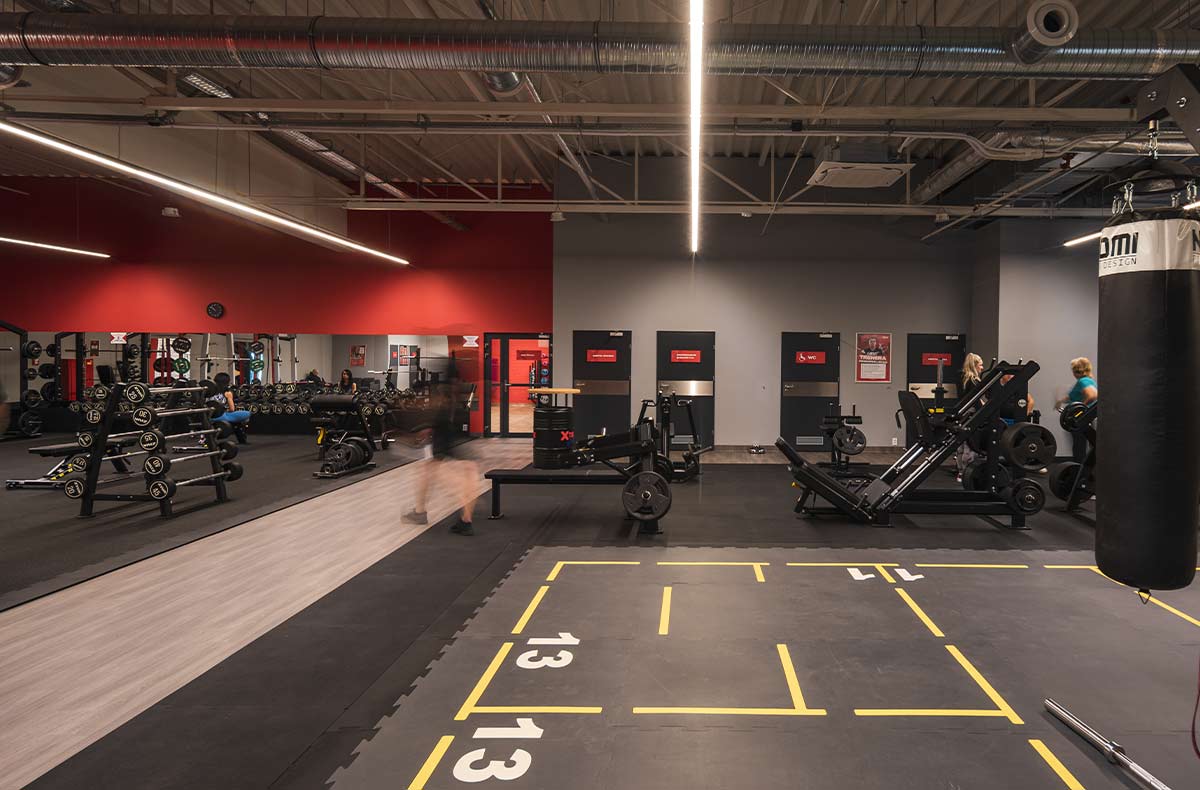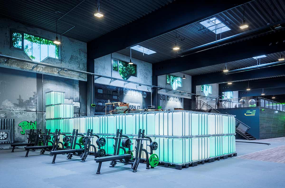 Hier worden trainingsapparaten gebruikt om het lichaam in vorm te brengen. Licht ondersteunt het karakter van de architectuur, benadrukt de dynamiek in de ruimte en zorgt voor een veilige, effectieve training.