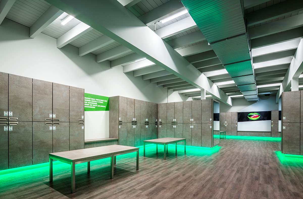 Een belangrijk onderdeel van de totale "fitness"-ervaring: de juiste, aangename verlichting in de kleedkamers straalt veiligheid en netheid uit - cruciaal voor de positieve algemene indruk van de leden.