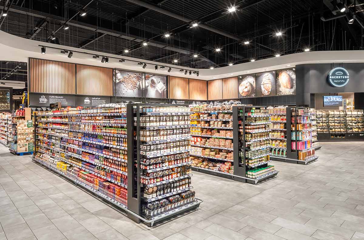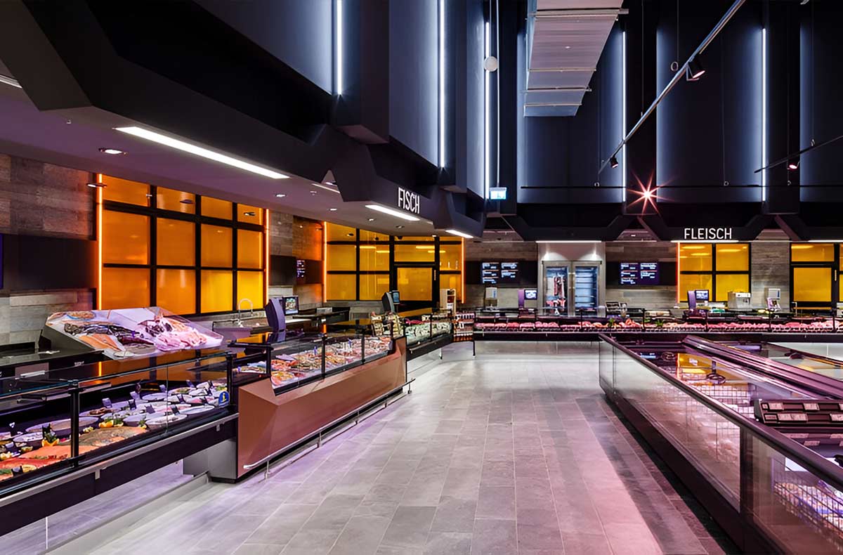 Skoordynowane widma światła prezentują każdą grupę produktów autentycznie, apetycznie i delikatnie. Jakość oświetlenia od parkingu do kasy, konsekwentnie ekonomiczna, wydajna i zrównoważona.