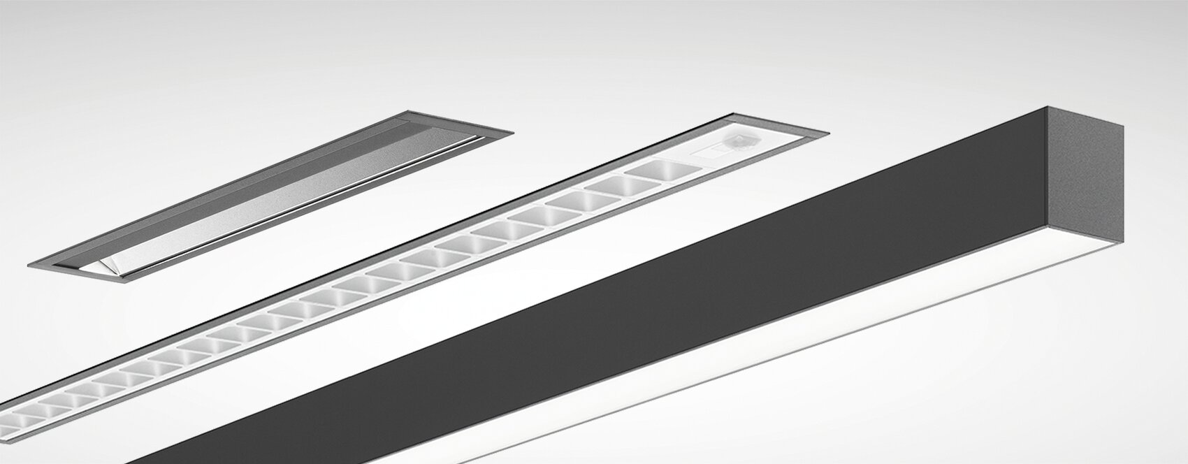Kompleksowe koncepcje zamiast przypadkowych rozwiązań: różnorodność techniki oświetleniowej i sposobów montażu umożliwia realizację nawet najbardziej złożonych projektów przy użyciu jednej serii opraw. Daje to atrakcyjne, harmonijne wrażenie ogólne.